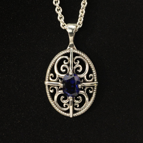3D Filigree and 8x6mm Sapphire Sterling Silver Pendant